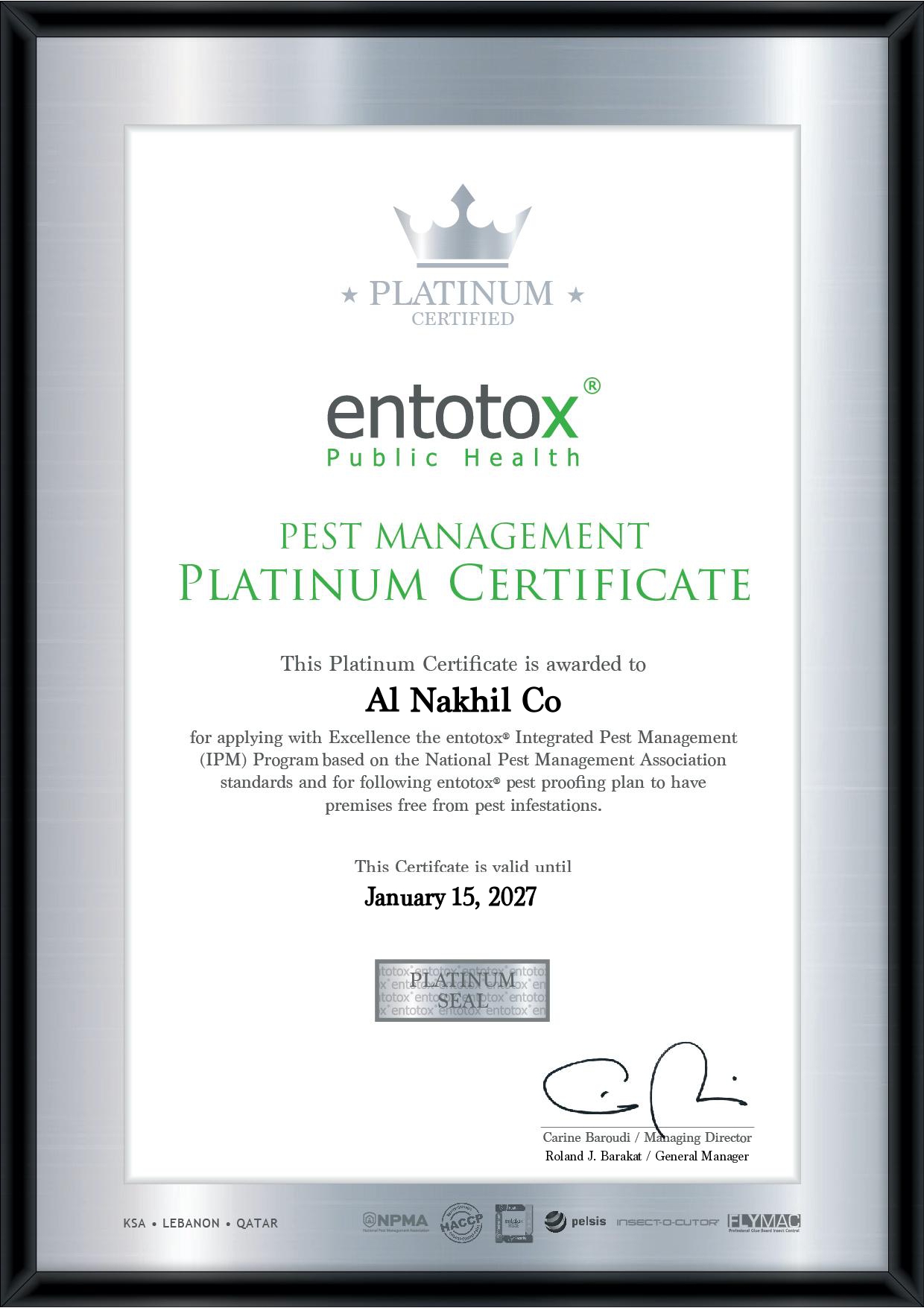 Pest Management Platinum Certificate